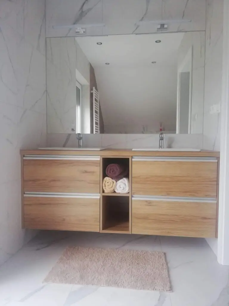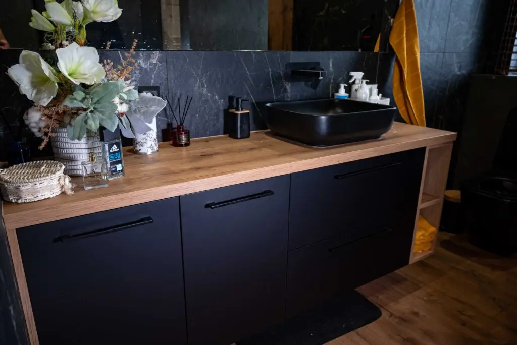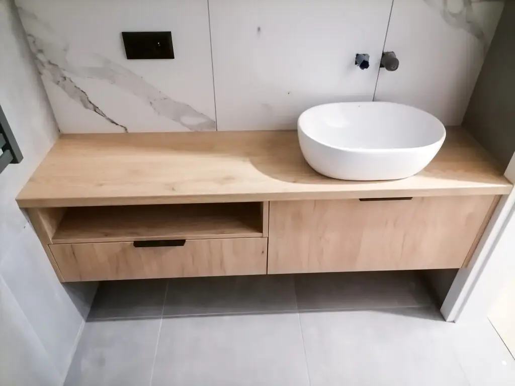 Tworzę meble łazienkowe, które łączą estetykę z odpornością na codzienne użytkowanie. Każdy projekt dopasowuję do wymiarów pomieszczenia oraz układu instalacji, tak by całość była praktyczna i wygodna. Dbam o to, by szafki, blaty i półki były wykonane z materiałów odpornych na wilgoć i zmiany temperatury.